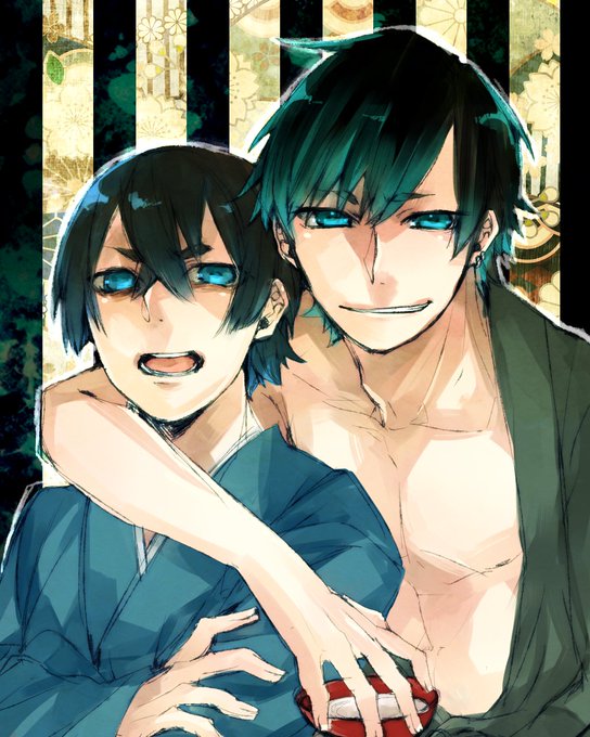 #リプで来たよその子にうちの子を添えて描く えのちゃん【@enoeno86 】宅のリクくんとうちの朱で!!