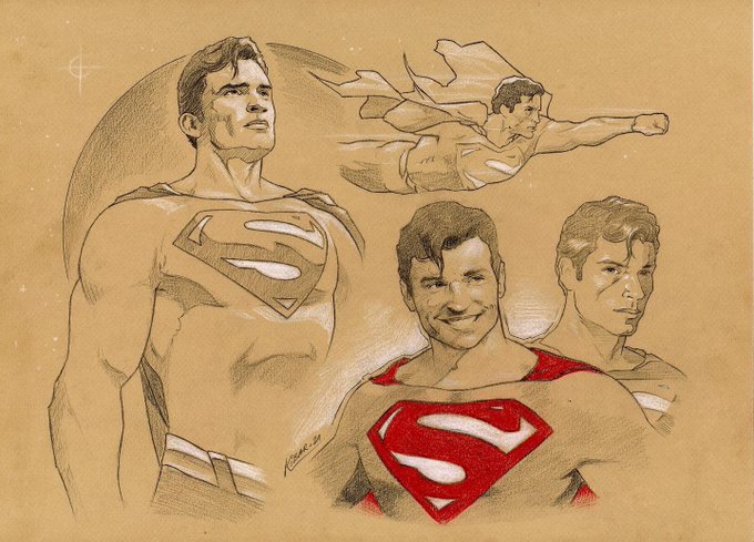 This is the second of three pieces I’m giving to Tom Welling at @ParisManga : character study of him as Sup. This was pencils made on brown paper.