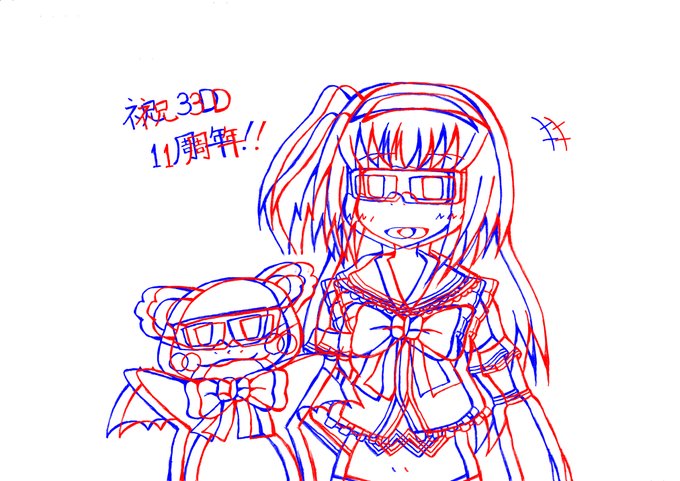 そして梨香ちゃんの3D記念日も2月14日! お祝いイラストを描きたいけど、どんな風に描いたらいいんだろう? 昨年は悩んだ末に3Dメガネを描きましたが、今年はどうしようかな??