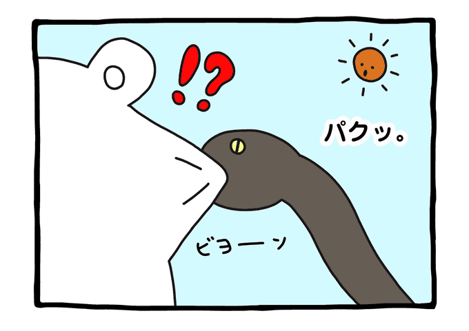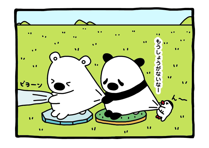 次の漫画は5月28日(木)!パンダしゅんは、前にシロクマしゅんの魚を取ってしまったことを実は気にしていたみたい!