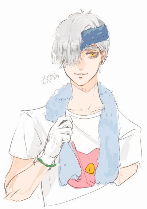 @playlot_TL 草むしりスタイル。どうやってもあれこれ動いてたら前髪上がっちゃうだろうから、タオル生地のヘアバンドしてるよ