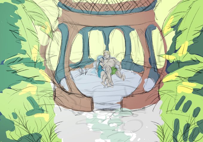 @KDMG_tl 南国でゆっくりしてくれという気持ちで書き始め終わりが見えない絵
