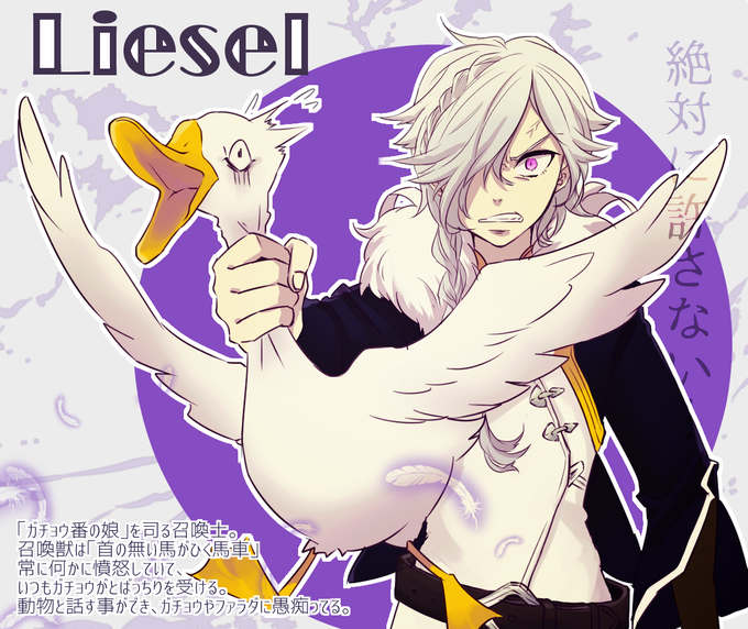 @sousakuTL ガチョウ番の娘の召喚士リーゼル。ガチョウとファラダ(首だけの馬)とはなかよぴ