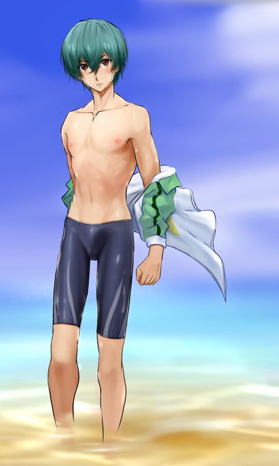 暑いので競パンに変えたみたい。