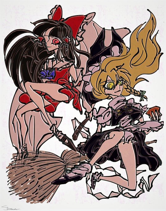 霊夢と魔理沙 5周年おめでとうございます! #深夜の真剣お絵描き60分一本勝負