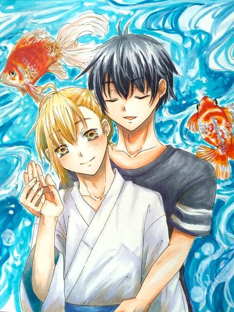 みづきちさん(@Midukiti1111)宅の綺世ちゃんとうちのアズのツーショット描かせて頂きました。