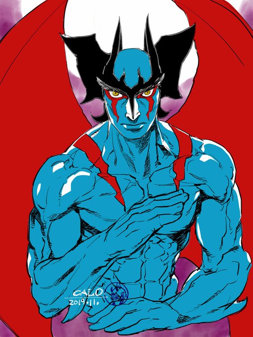 Adobe Fresco で作成 #AdobeFresco いろんなデビルマンがありますが、どうにも、青いひとがいちばん好きです…(イニシャル入りの変Tシャツ込みで。