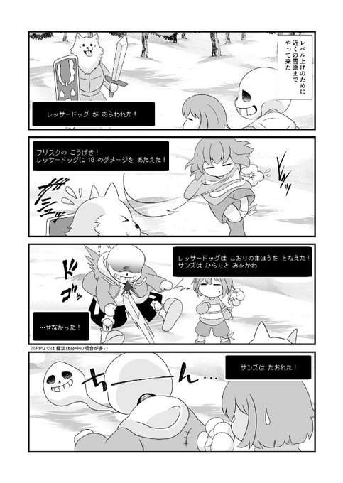 冷たい手をフリスクにくっつけようとしたら、不意打ちを喰らったサンズの図