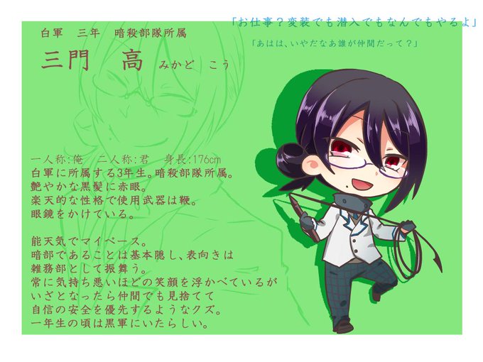 @gakusen_TL 白軍に潜入してるときは明るくいい子演じてるけどたぶん隊員の顔と名前を一致させてない程度の人嫌いです #お面部隊