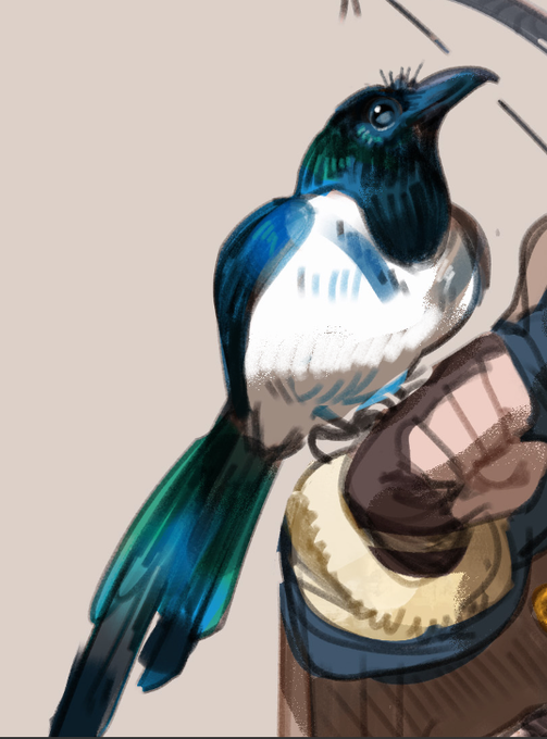 The lil magpie friend based on @breesophiebree from yesterday was part of a larger D&D commission I took at FlameCon for the oh-so kind and patient Cillian (https://t.co/sXe48Tcxa4). Thank you so much!!