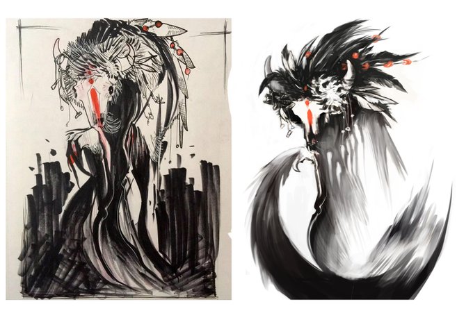 Work in progress for a collaboration/ redraw project with @ladydraculena - please check out her art, it's fantastically fantastic! We are each redrawing each other's original work. I'll be sure to keep updating the progress. I really like this idea of hers, the character swi…