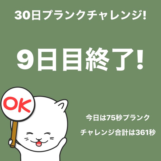 #プランクチャレンジ 9日目終了!今日は75秒プランクしました。 #30日チャレンジ https://t.co/1ZLSX1LDTf