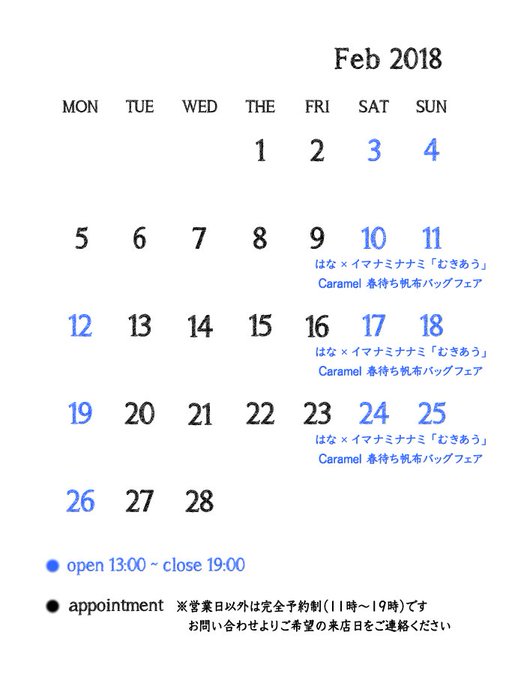 2018年2月10日㈯~26日㈪の土日月曜日