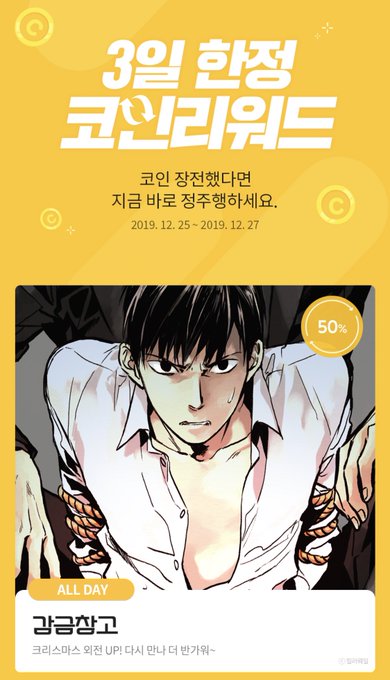 감금창고 코인 리워드 이벤트 중입니다! 반값으로 정주행 찬스💕