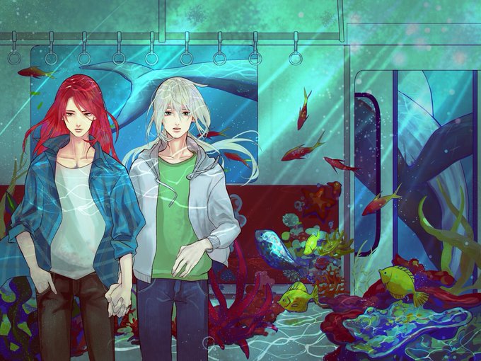 トモヨさん(@tomo_momo_yo )のトリベディ小説の表紙を描かせていただきました!🐠サンプルだけでもこころの柔いところがもみくちゃにされるので是非是非皆様ゲットしてトモヨさんが織り成す物語の海に沈んでくださいませ〜〜🐟 画像は表紙の全体図です