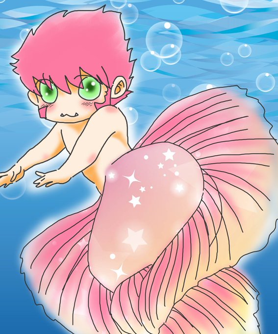 人魚ウス~🐟 (目は好みより翠のままです)q(≧▽≦q)
