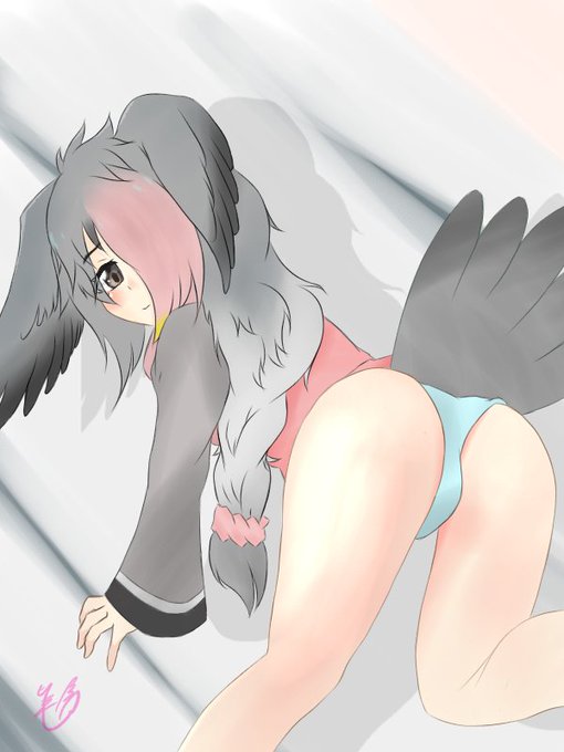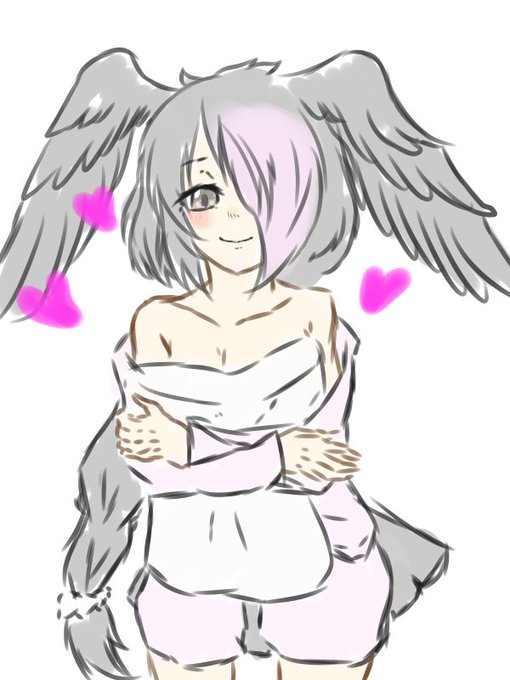 片目隠れ 羽がある(様に見えた) リボン ふわふわ(くせっ毛) かわいい おっ○い なるほどなるほどコシベニペリカンちゃんですね ......ヤクちゃんかわいいね