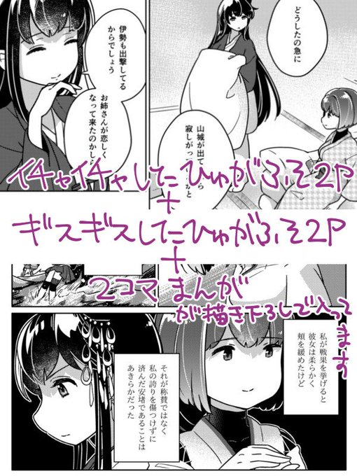 22日の砲雷撃戦よーい!「ち-20 永遠期限」で頒布するひゅがふそのようなふそひゅがのようなまとめ本のサンプルです。webで公開したモノクロのやつ+描き下ろしが4.5pくらい入ってます。通販はこちら→ https://t.co/xjaxOlXd72