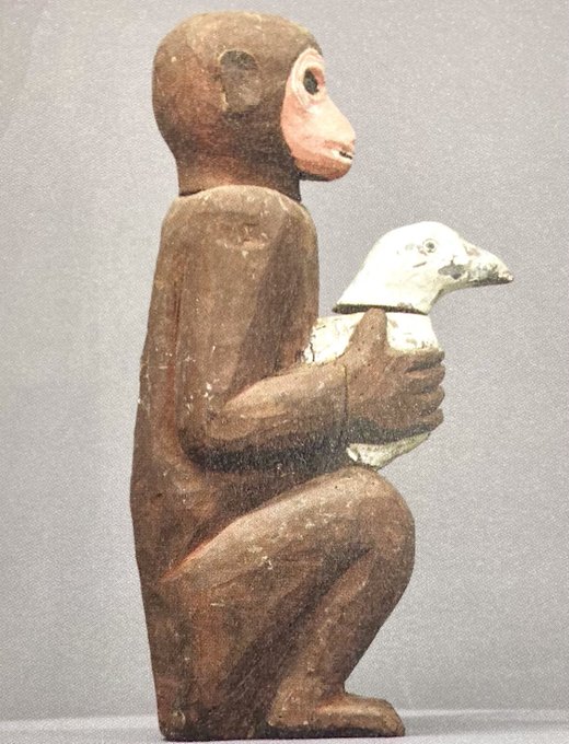 一見かわいい猿の像も緑がかった玉眼がキラりと光り、呪術的な雰囲気。鳥を抱く猿は「災厄を取り(鳥)去る(猿)」の意が込められた可能性があるそう。