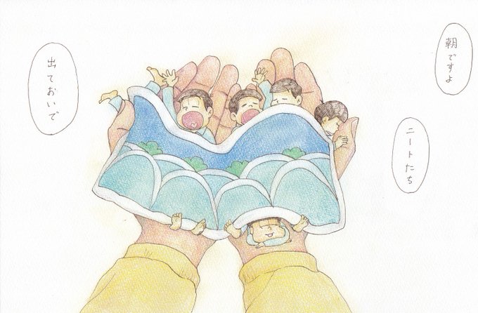 とりあえず完成。 「街に塩をふる魔法使いチョロ松」 数年後に見たらなぜ塩?と思うんだろう。 水彩難しい~。練習練習