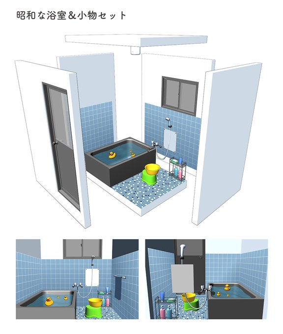 BOOTH、CLIP STUDIO ASSETSにて、「昭和な浴室&小物セット」の3D素材を販売開始いたしました。