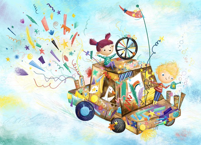 Who knew homemade cardboard box cars could fly... 🚙 📦 ⭐️ #colour_collective #childrensillustration #illustration