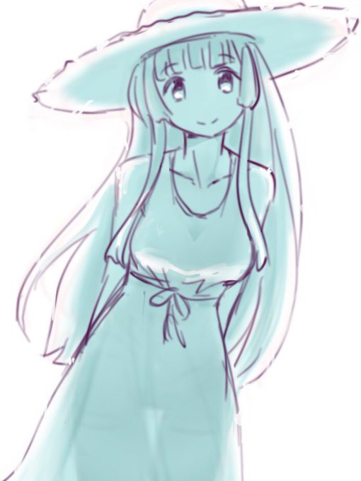 毎日お絵描き9日目 夏は麦わら白ワンピだと思う
