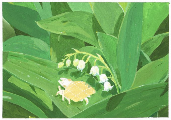 최근 그림 네장 모아보기. 봄과 꿈, 초록, 산책.