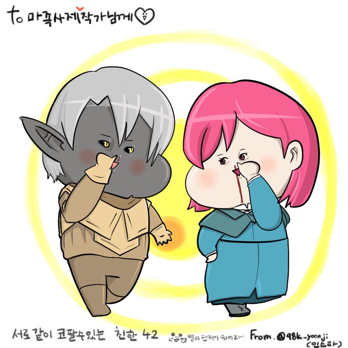 마족사제 작가님 팬아트 그리다가 이거 임티로 딱인데라는 생각이들어 나는 ‘코파기 좋아해’ 임티 만들꺼다.!!!!