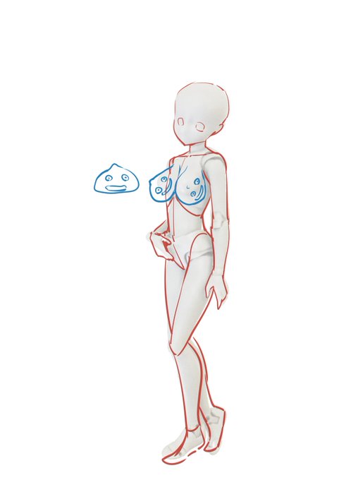 今日はスライム法を使って胸の大きさの描き分けを研究してた。 ポーズ人形の写真→素体→スライム貼り付け って感じ