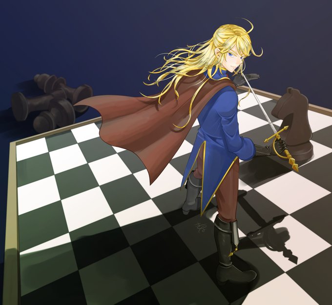 「私の勝ちのようだな!」 ルイスのクソ兄貴エヴァンさんです。2枚目は顔回りアップ チェス盤はイェッタ(@ty_glwp)の案で描きました! 素敵な案をどうもありがとう!!