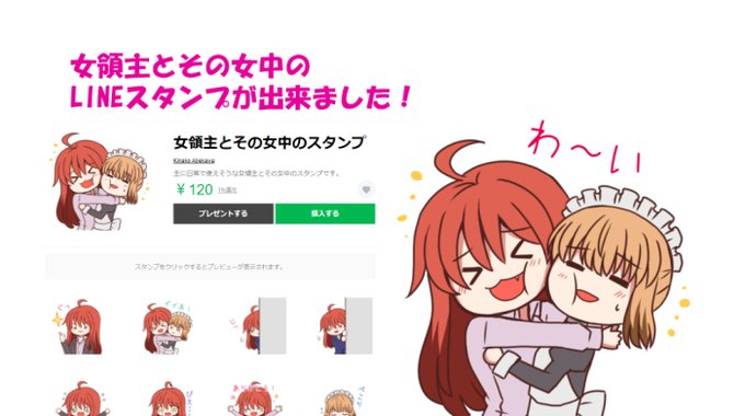 拙作「女領主とその女中」のLINEスタンプ、承認(おどろきのはやさ)されたので販売開始してます