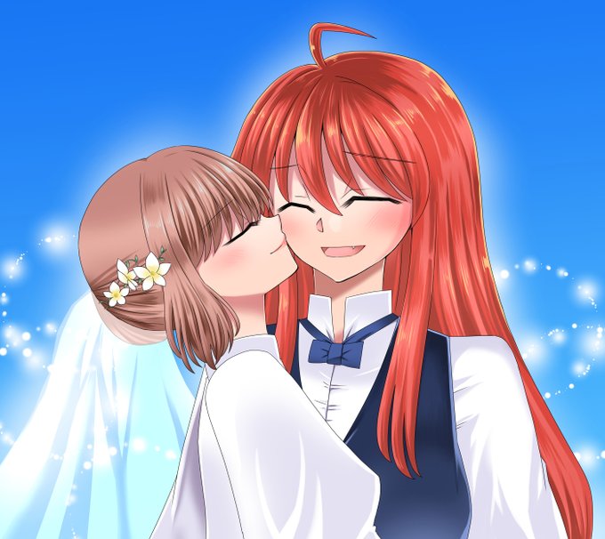 せっかくなので改めて大きくupするんですけど(拙さはあるにしろ)私この絵幸せ全開な感じがして嫌いじゃないんですよね……。いいよね結婚……。 #創作百合
