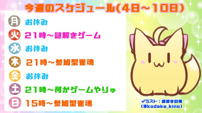 今週のスケジュールイラストはきのさんの作品✨