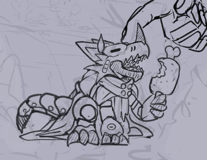 もはや公式絵がアテにならないのでハエがグレイドモンを作るという心持で描き進めている