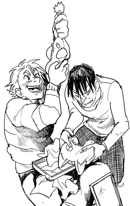 supposed to be fuku-->tou<--shin sandwich but i dont want to draw anyone but toudou