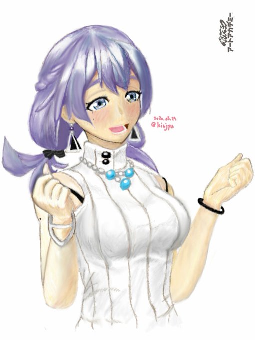 黒水着。肌色の練習ということでさらに露出💦ハイネックを消したら首長く見える。肩幅、角度に違和感。アタリ取り直し。恥じらい困り顔。