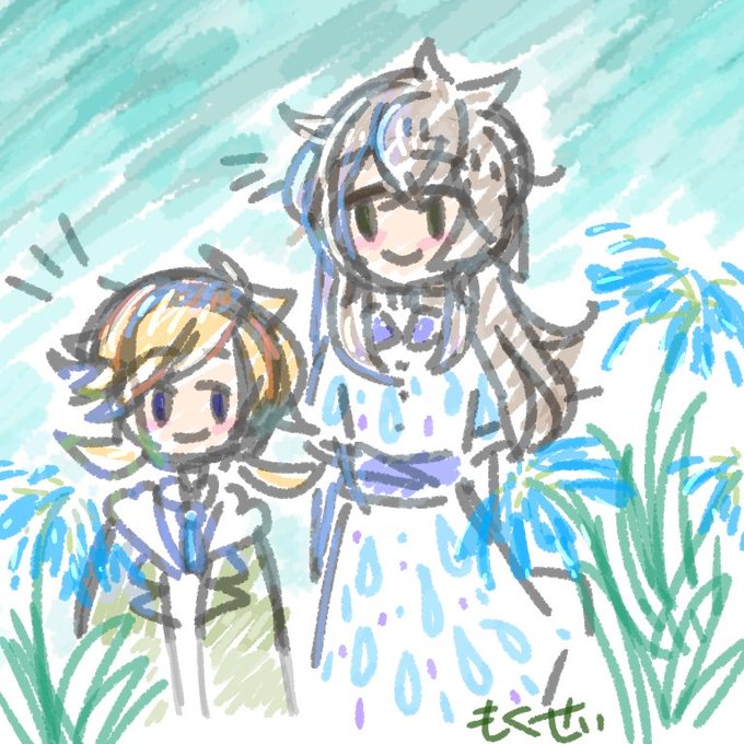 ゅあさんの描かれた、座ってるかわゆいユキちゃんの線をお借りして、そのまわりを想像してみました…(*´▽`*)🌿