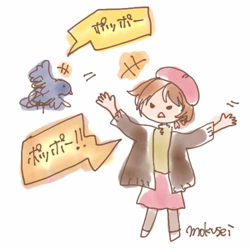 何回見ても慣れない、未定の主ちゃんと鳩の戦い落書き