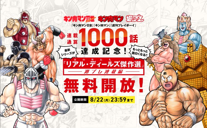 【本日未明アップ休】『週プレNEWS』の『キン肉マン』本編の本日未明アップ、および『週刊プレイボーイ』本誌の発売はお休みです。ただいま、「リアル・ディールズ傑作選【週プレ連載編】」を公式サイトにて公開中ですので、ぜひご活用ください。