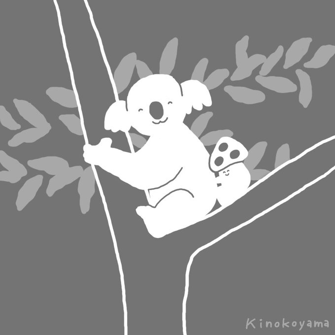 コアラに抱きつくきのこ🐨 #一日一絵 #イラスト #きのこ #コアラ