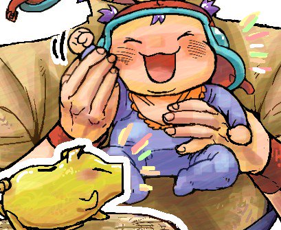 ころけ。 初見で受けたサイズ差イメージ。 大人リゾットのバンダナ、初見で「でか!」と思ってそれだけだったけど、それってつまりどういうこと?と考えていったあれこれ。 https://t.co/EtE5wWEYnX