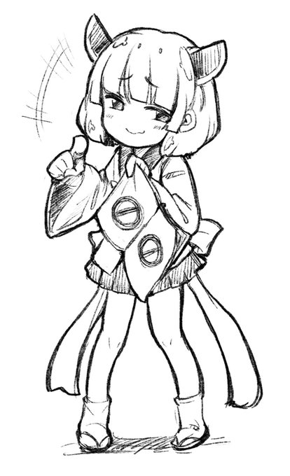筆ペン一発書きの練習で描いたアカネチャン 安易に薄墨を使ったり描きにくいからと手を隠してはいけない(戒め)