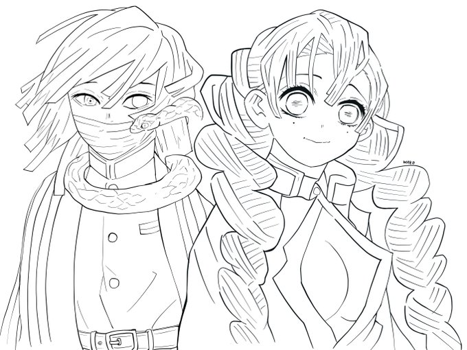 昨日描いた甘露寺蜜璃&伊黒小芭内に色をつけてみました! おばみつ、やっぱりいいな! ↓その他の塗り絵はコチラ! https://t.co/PPPfVhkh5i 線画はお子様の塗り絵にでも使えたら使ってくださいませ! #鬼滅の刃 #甘露寺蜜璃 #うちで過ごそう #塗り絵 #伊黒小芭内 #おばみつ