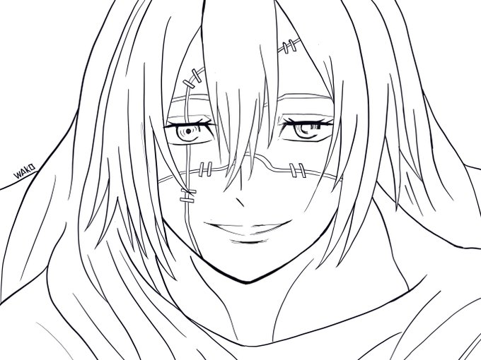 呪術廻戦の真人(まひとくん)を描いてみました! うーん、難しい。もっと雰囲気を出せるように頑んばらねば! 線画はお子様の塗り絵にでも使えたら使ってくださいませ。 #呪術廻戦 #真人 #まひと #うちで過ごそう #塗り絵 #毎日投稿5日目