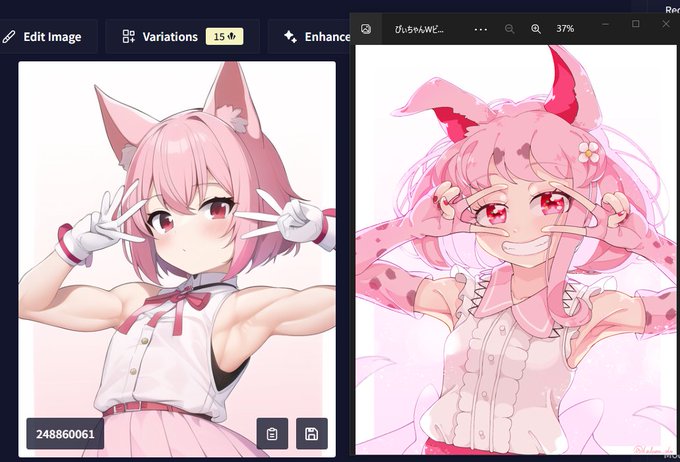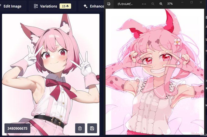 右が僕の落書きで描いた絵なんだけど、NovelAIちゃんの絵もかわいいなオイ(2枚目が一番好き)