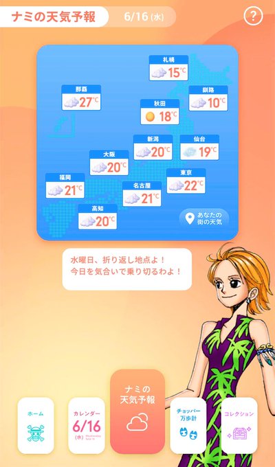 一日雨かなァ。ま、気合いで乗り切るわよ🍊#まいにちワンピ