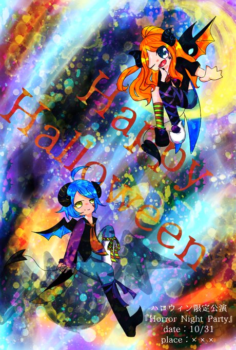 あと急ピッチで仕上げたハロウィン絵〜!創作! 左下はよその子です ポスター風にしたかった(遺言)