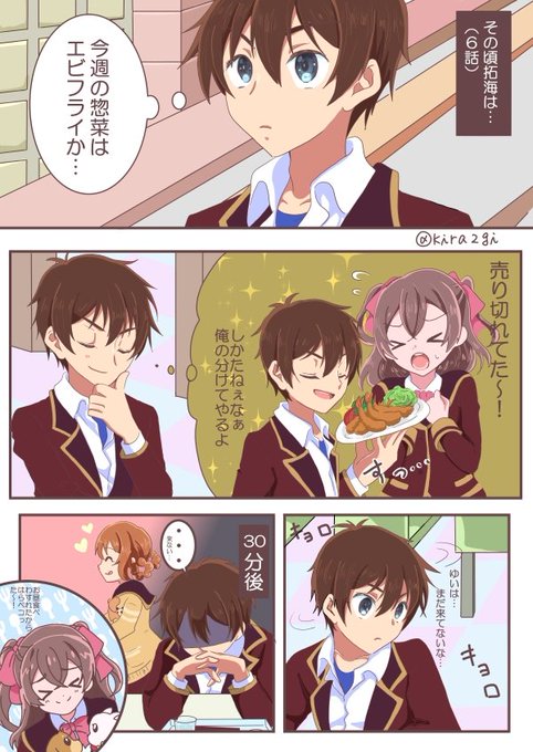 遅くなったがデパプリ6話妄想漫画。 拓海が出演しなかった裏ではこーなってたと妄想。 うちの漫画の拓海が気の毒なのは(ry) #拓ゆい