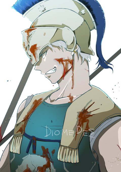 明日主従の日でツルニチソウテーマに書くぞ!って線画終わってからこの二人は主従っぽいけど主従じゃない!と気づいたので今日あげます ステネロスとディオメデス